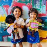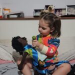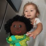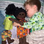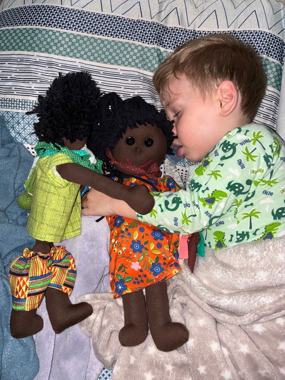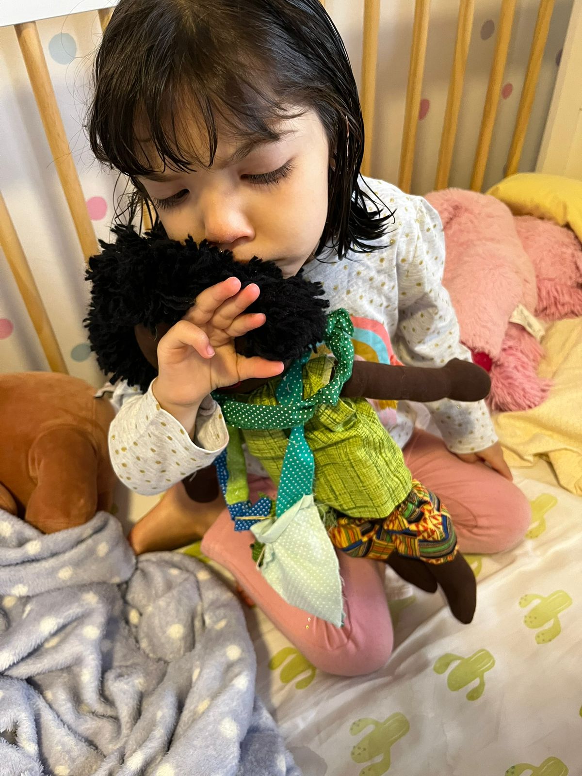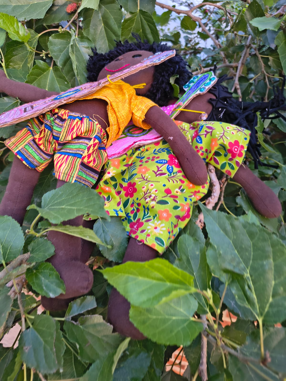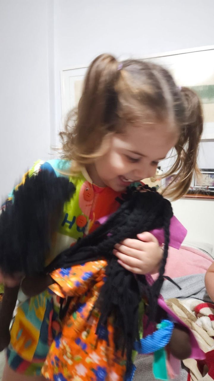 A brincadeira com bonecos e bonecas pretas, envolvidos/as por lenços, tecidos, cestos e o próprio colo, desenvolve na criança a afetividade e desperta o aprender pelo encantamento. Desde bem pequenas, elas começam a perceber a si mesmas e ao outro e, nesse processo, com suas singularidades, aprendem a viver em meio à diversidade.