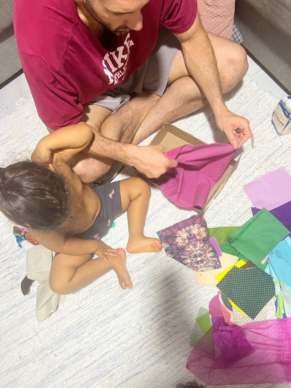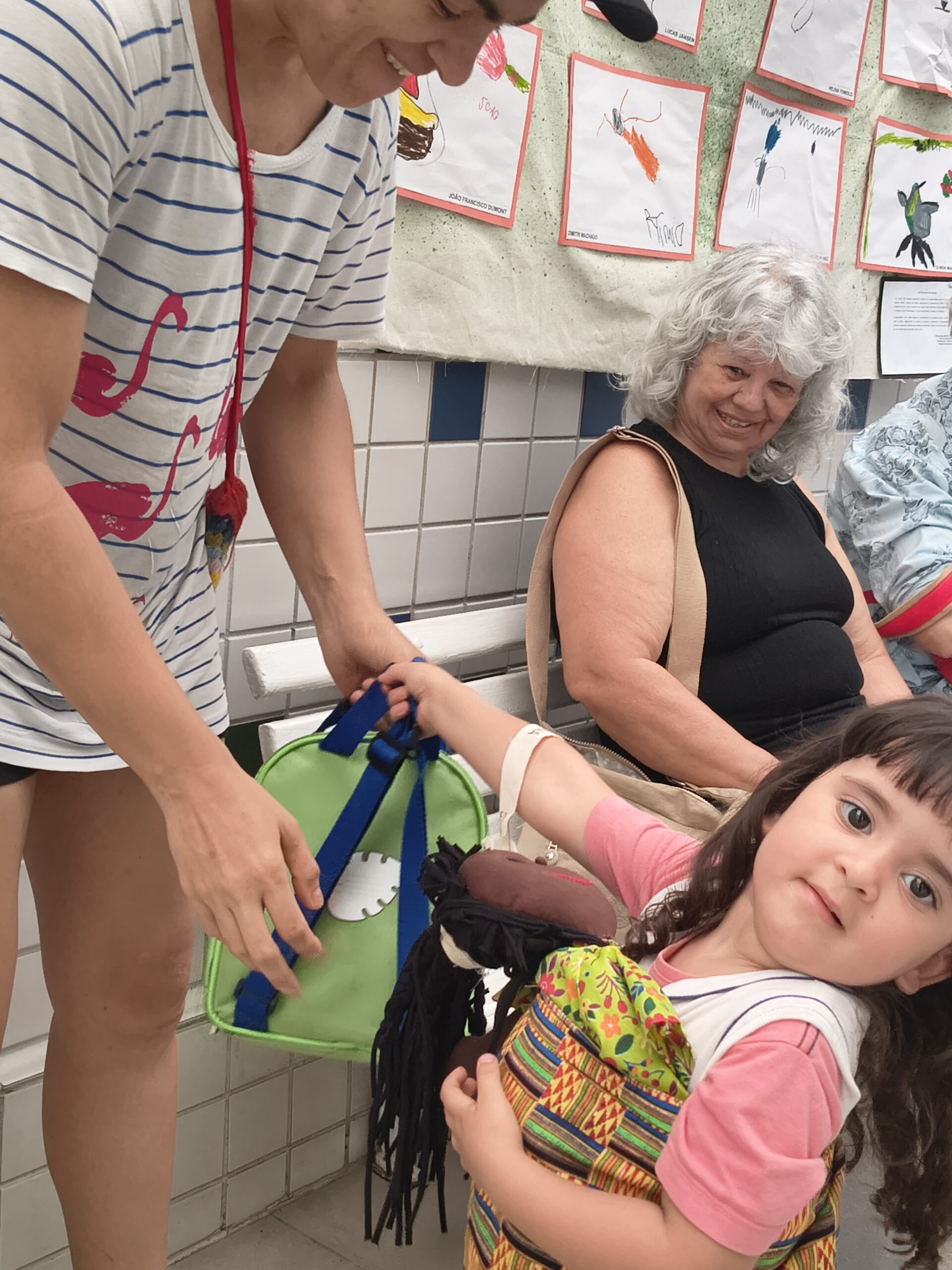 O envolvimento de cada família foi um encanto! Recebemos registros do processo de construção e confecção dos adereços e mimos: pulseira, bolsa, naninha, cama, travesseiros, bandana, colar, lenço, tapa olho, sapatos, balanço, violão, livro… Uma riqueza de tesouros!