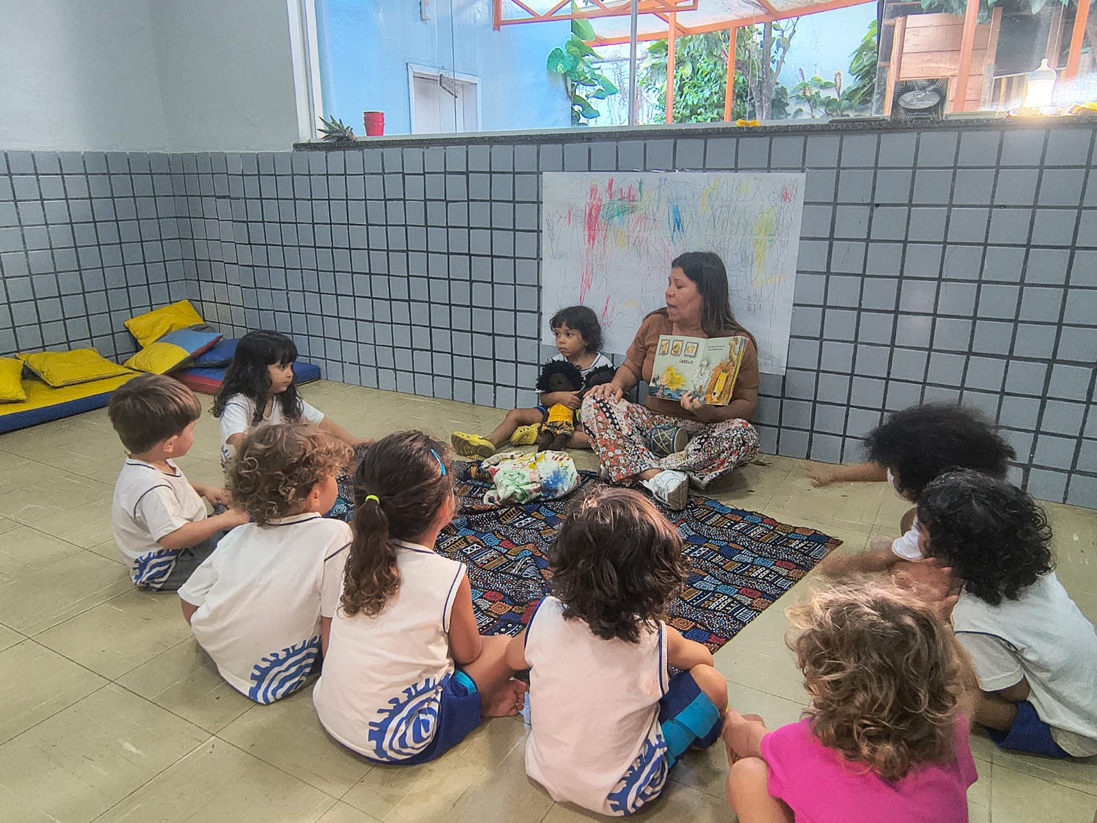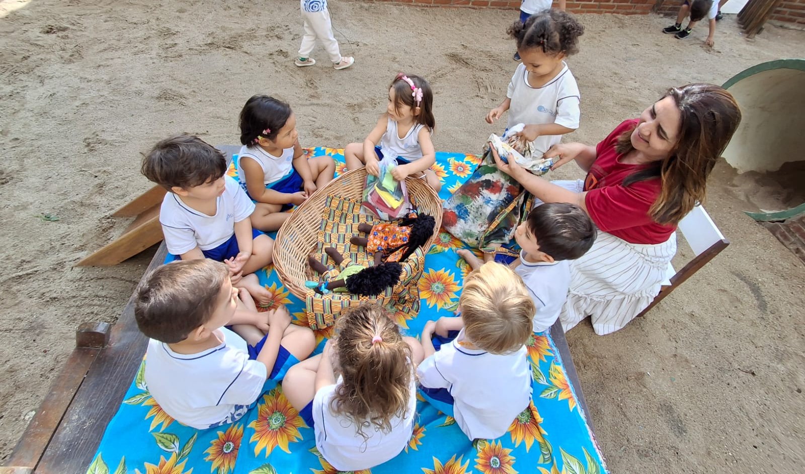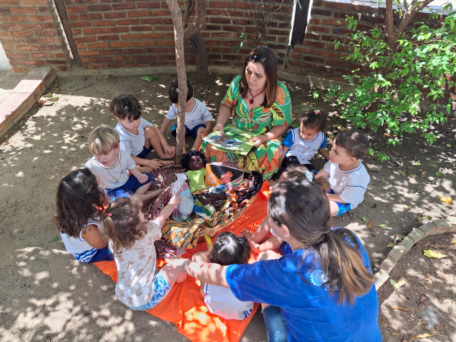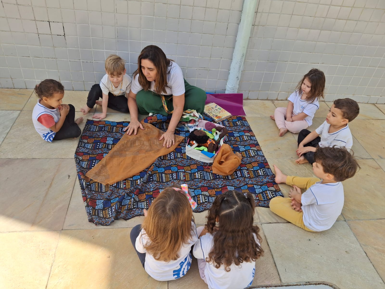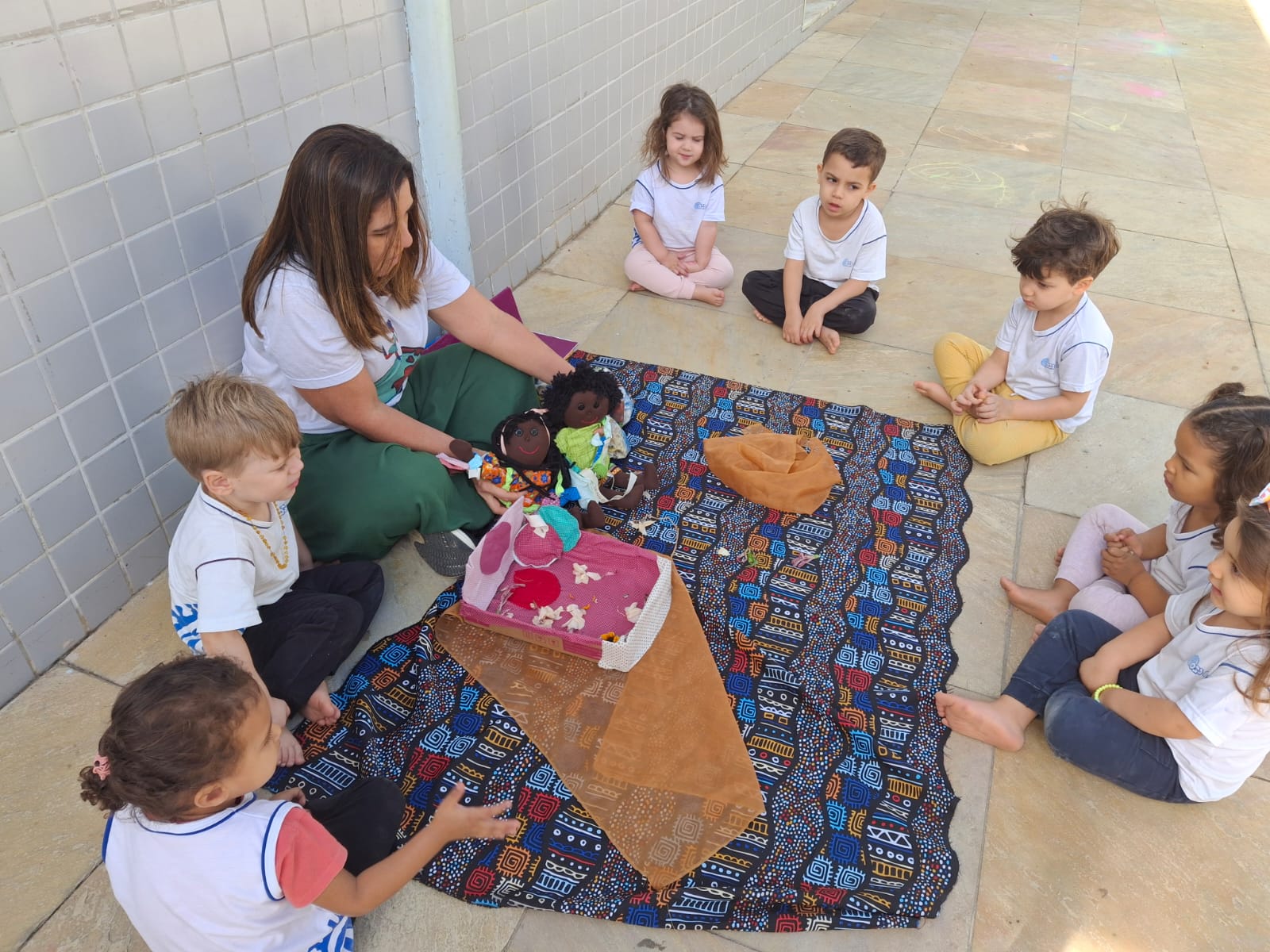 A perspectiva antirracista entrelaça a nossa prática e impregna os objetivos do trabalho com as crianças no nosso cotidiano. Apostamos no brincar desemparedado e na literatura como fonte inspiradora. Nosso objetivo é apresentar às crianças um universo que desperte o olhar cuidadoso para as diferentes raças, culturas e memórias, revelando a força e a beleza da ancestralidade afrodescendente e garantir a prática cotidiana embasada na lei 10.639/2003.