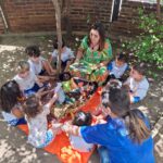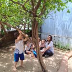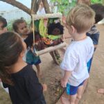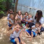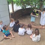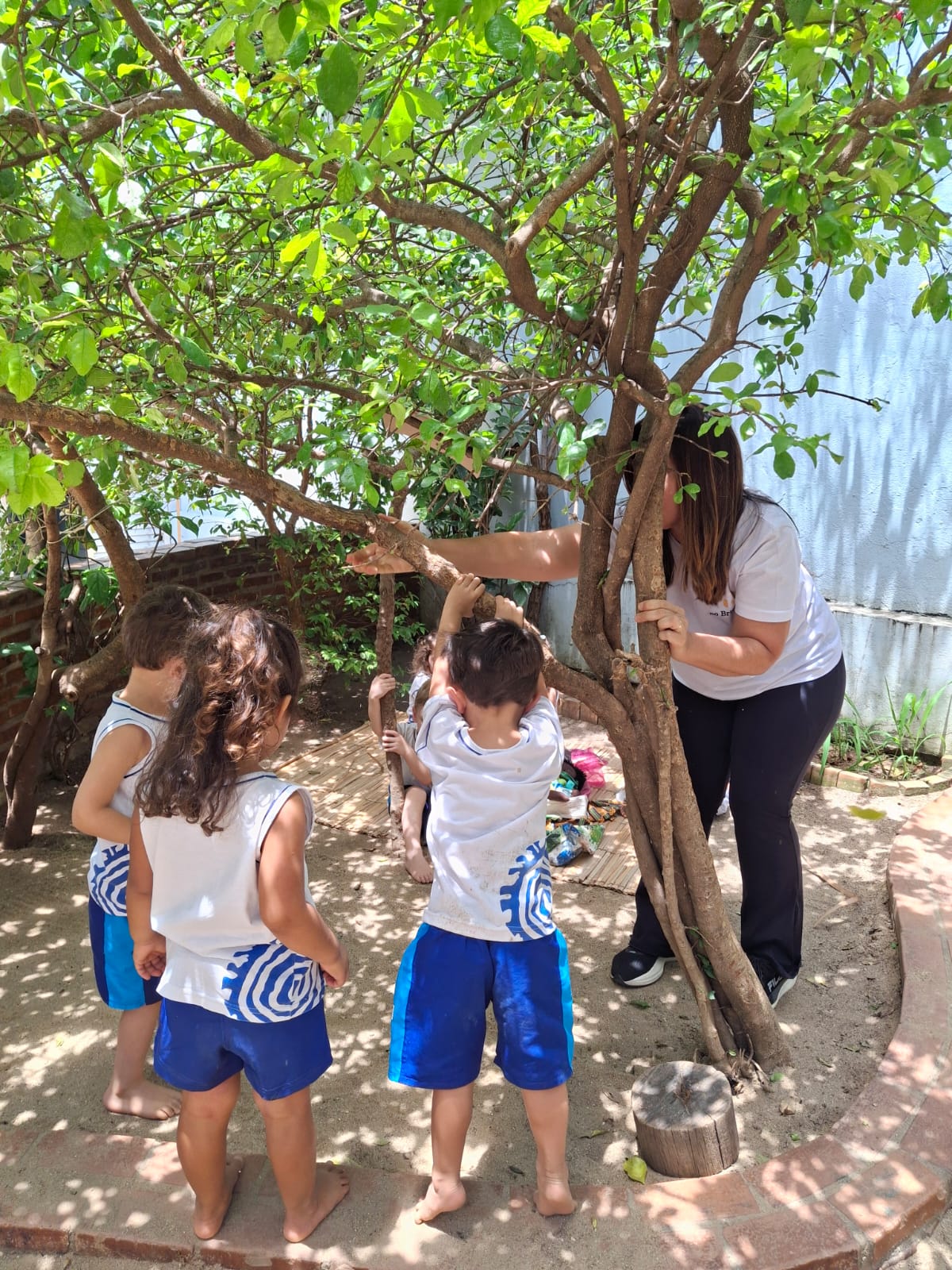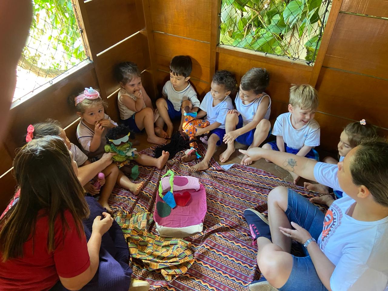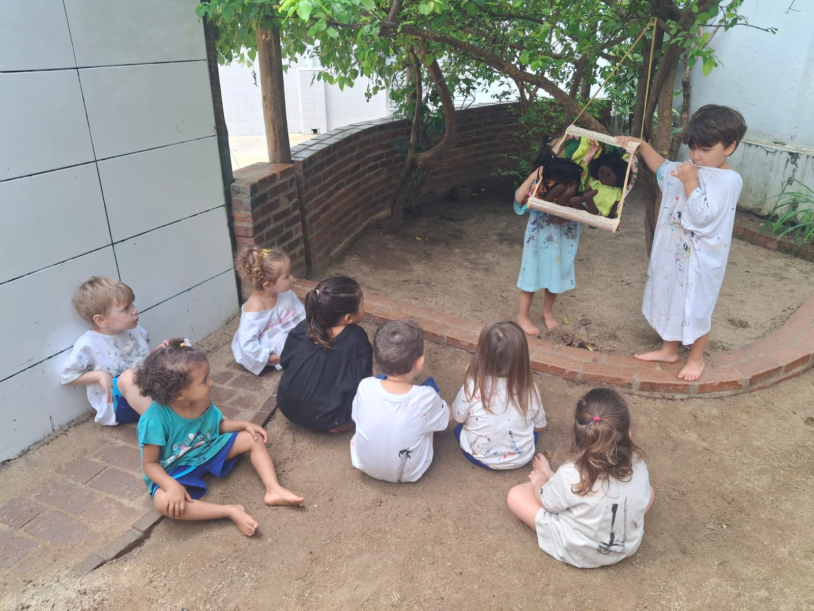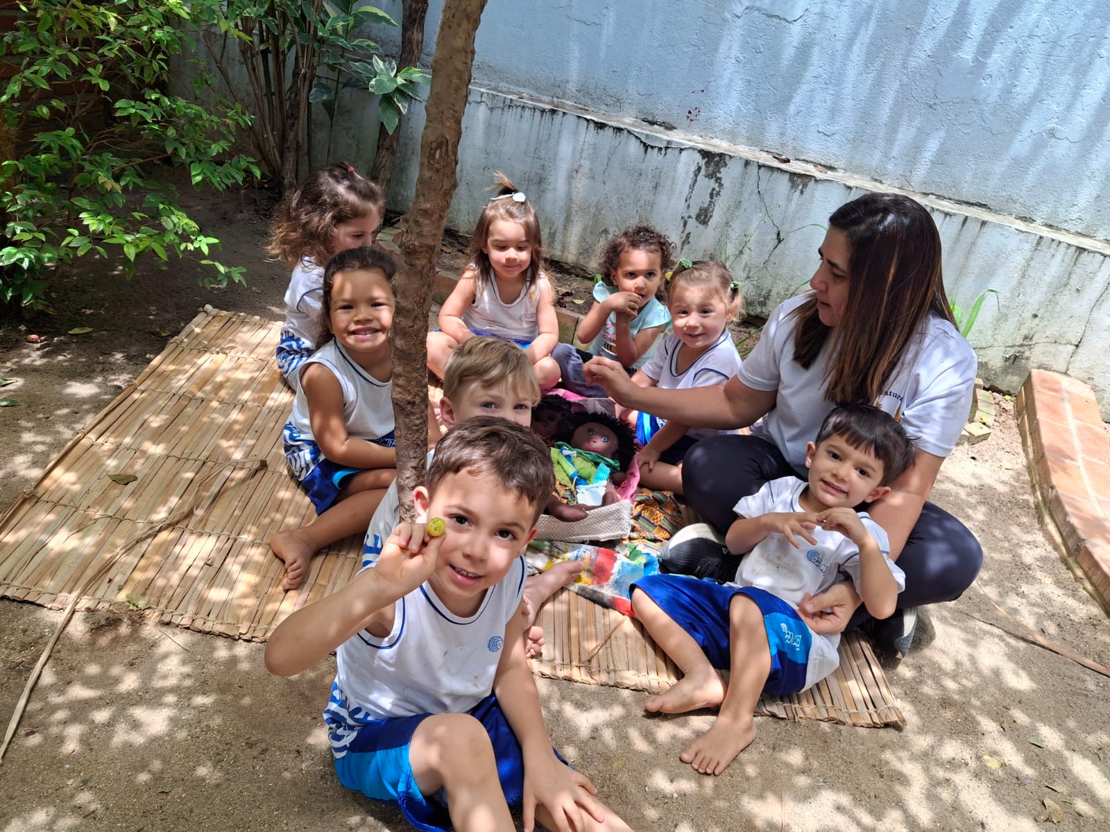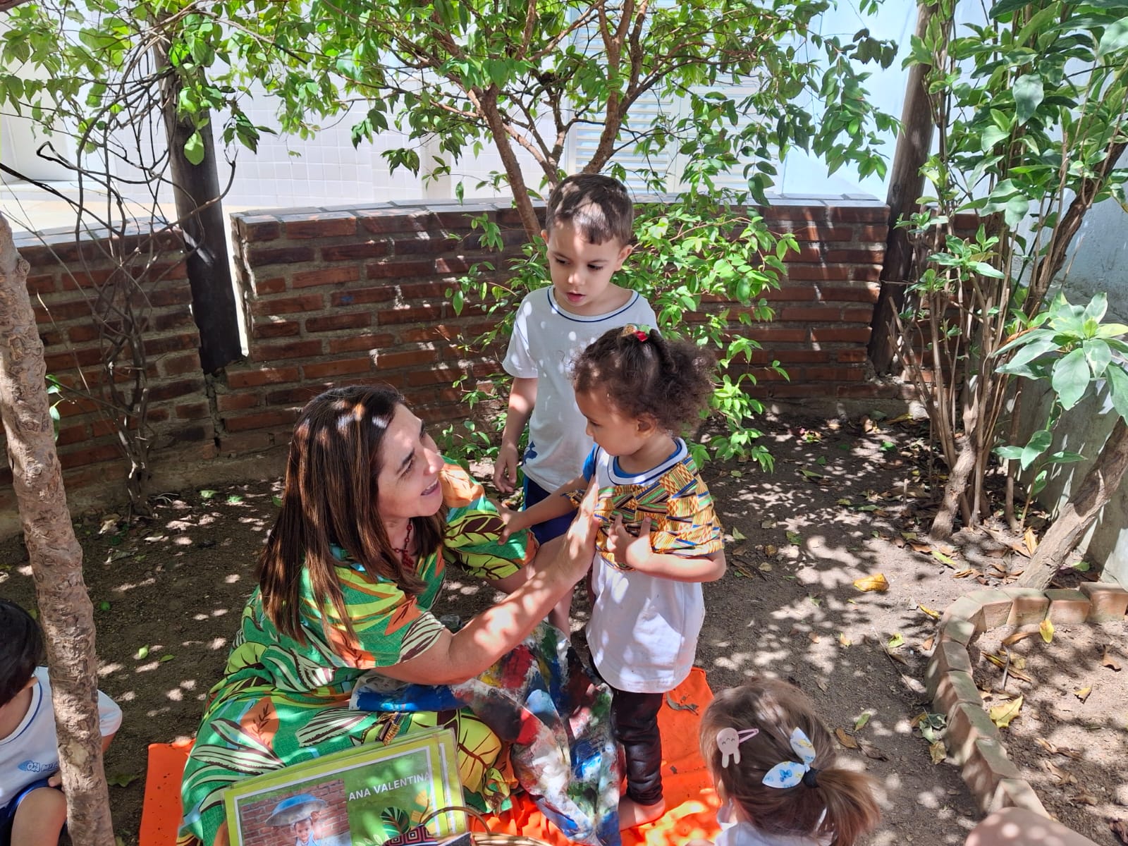 A perspectiva antirracista entrelaça a nossa prática e impregna os objetivos do trabalho com as crianças no nosso cotidiano. Apostamos no brincar desemparedado e na literatura como fonte inspiradora. Nosso objetivo é apresentar às crianças um universo que desperte o olhar cuidadoso para as diferentes raças, culturas e memórias, revelando a força e a beleza da ancestralidade afrodescendente e garantir a prática cotidiana embasada na lei 10.639/2003.