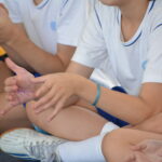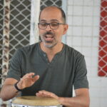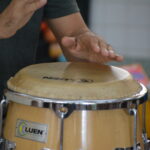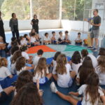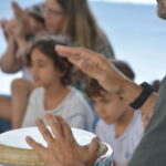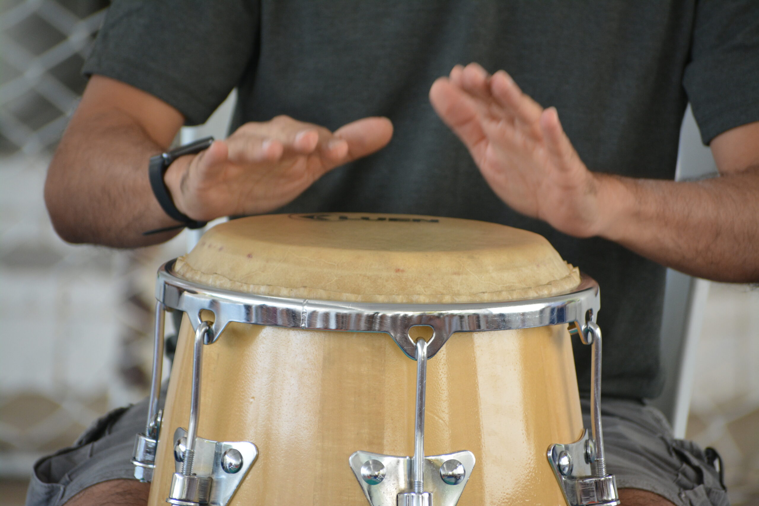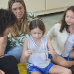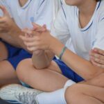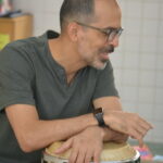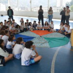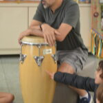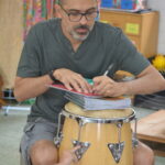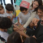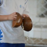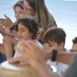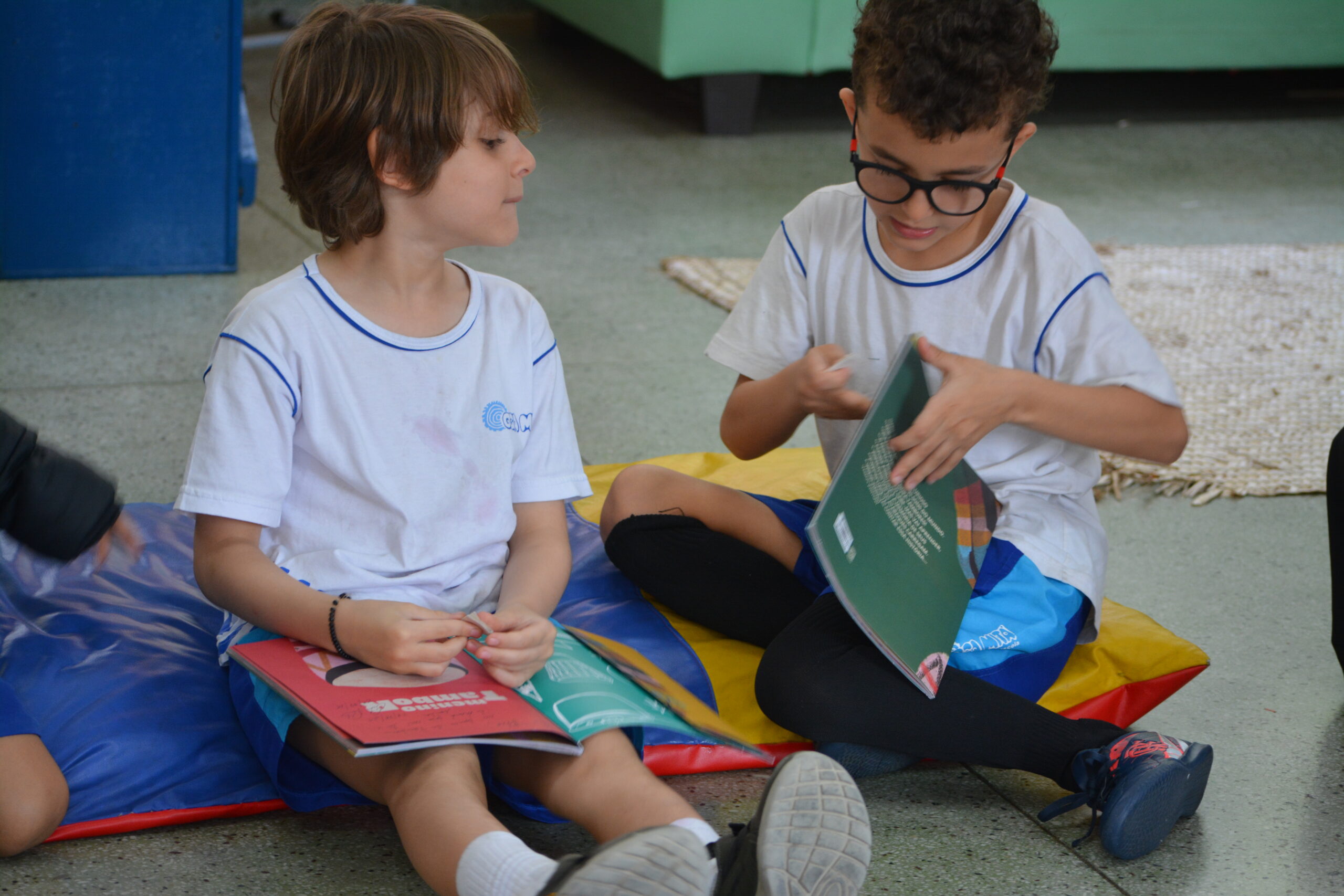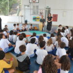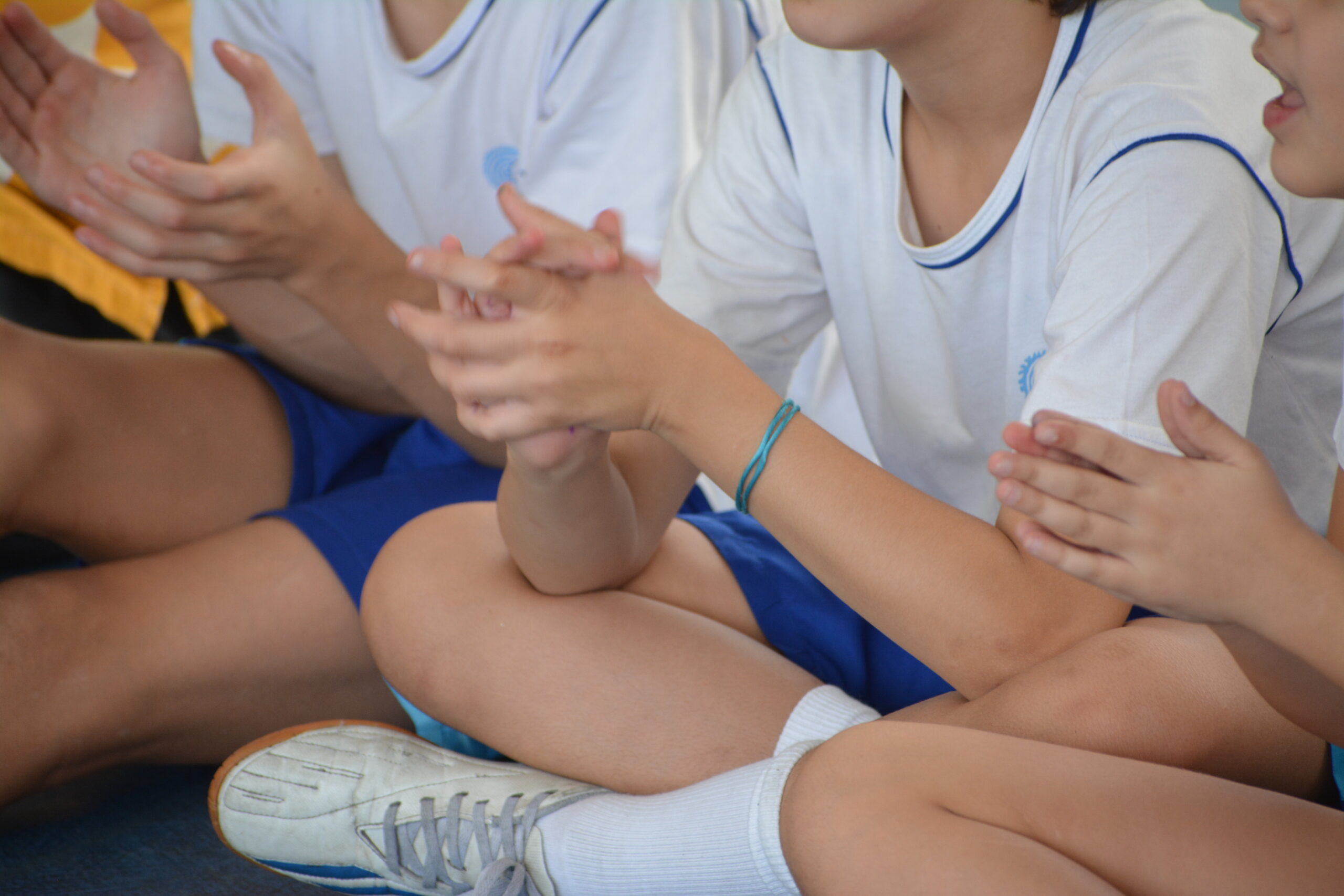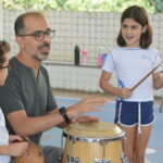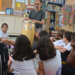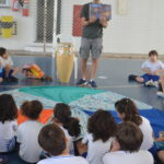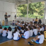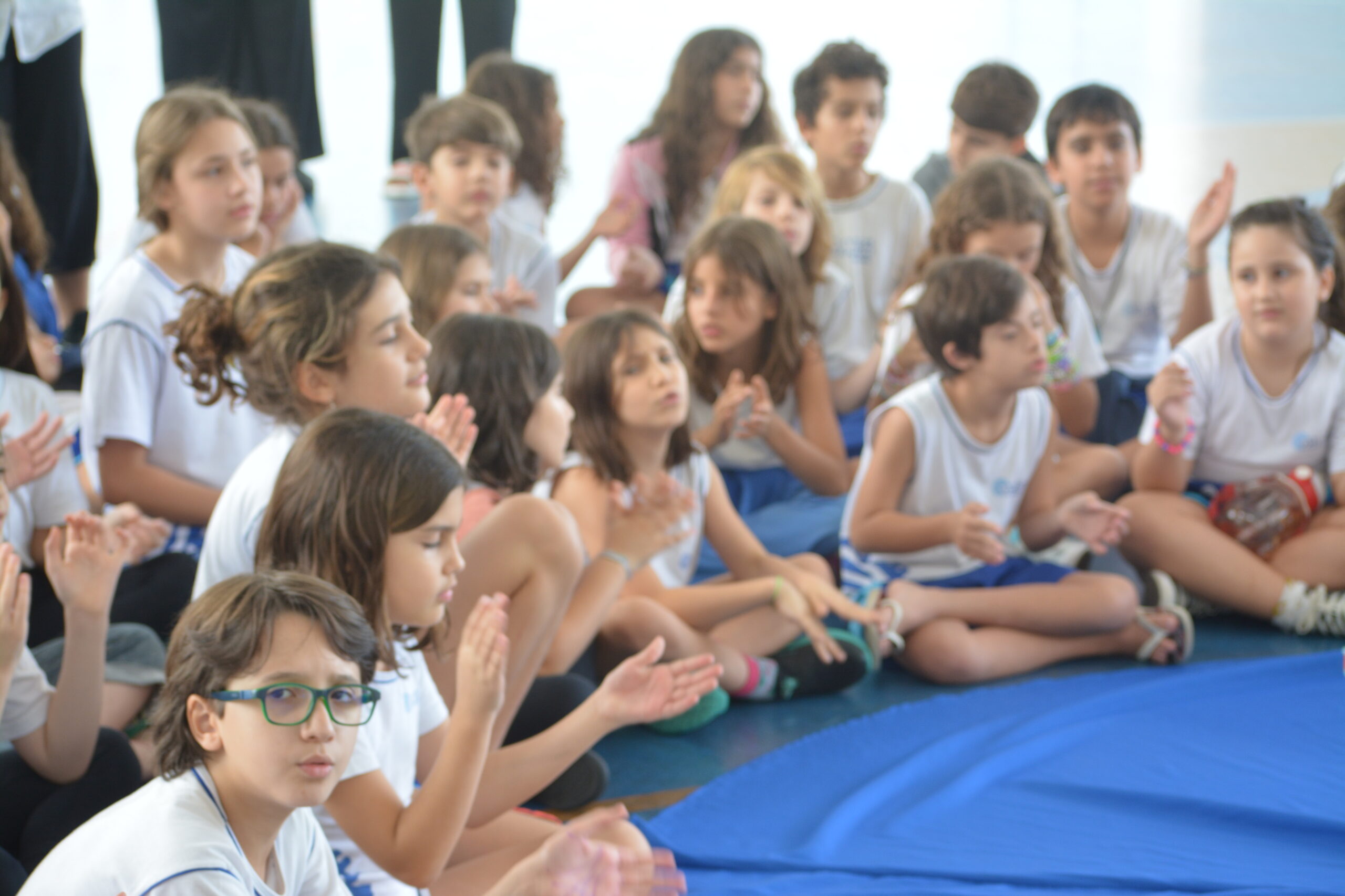 O primeiro momento foi um bate-papo onde as crianças, curiosas, fizeram perguntas para conhecê-lo melhor. Depois, Edu trouxe muita música ao som do atabaque. No segundo momento, convidamos as outras turmas do 1º ao 5º ano do Ensino Fundamental para se unir a nós e Edu fez a contação da história.
