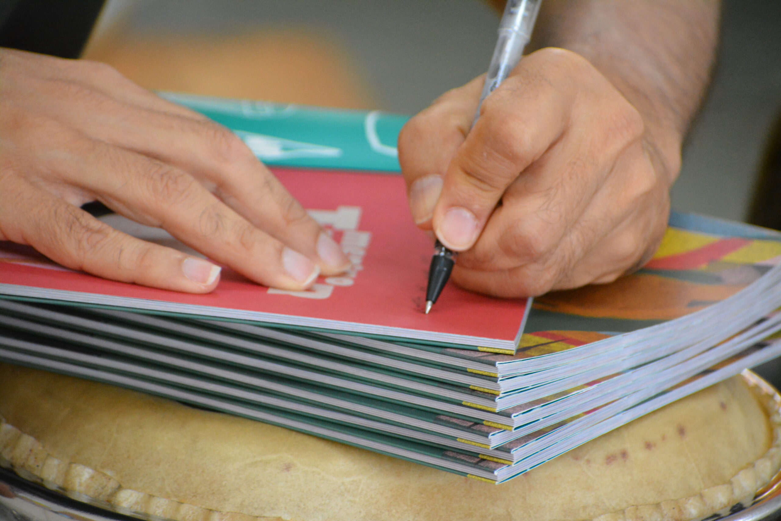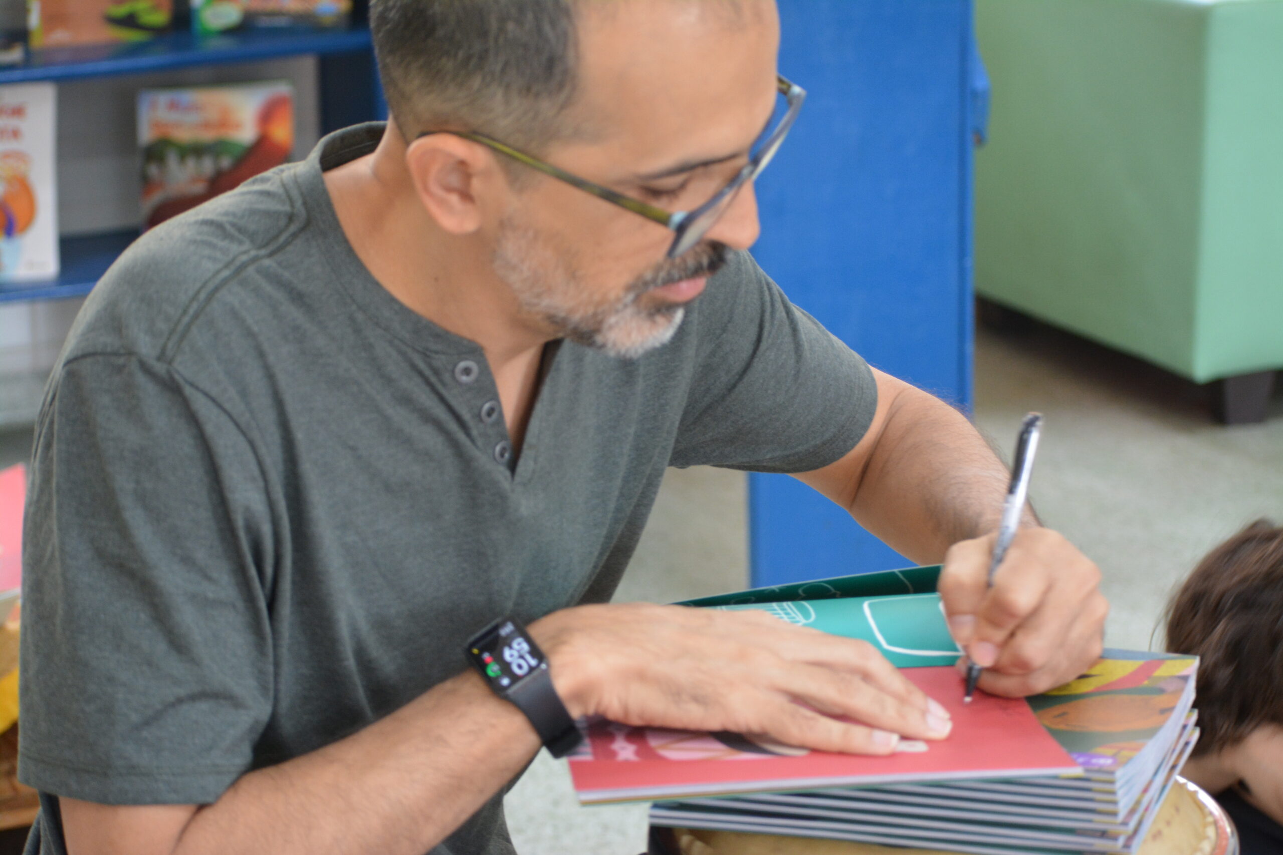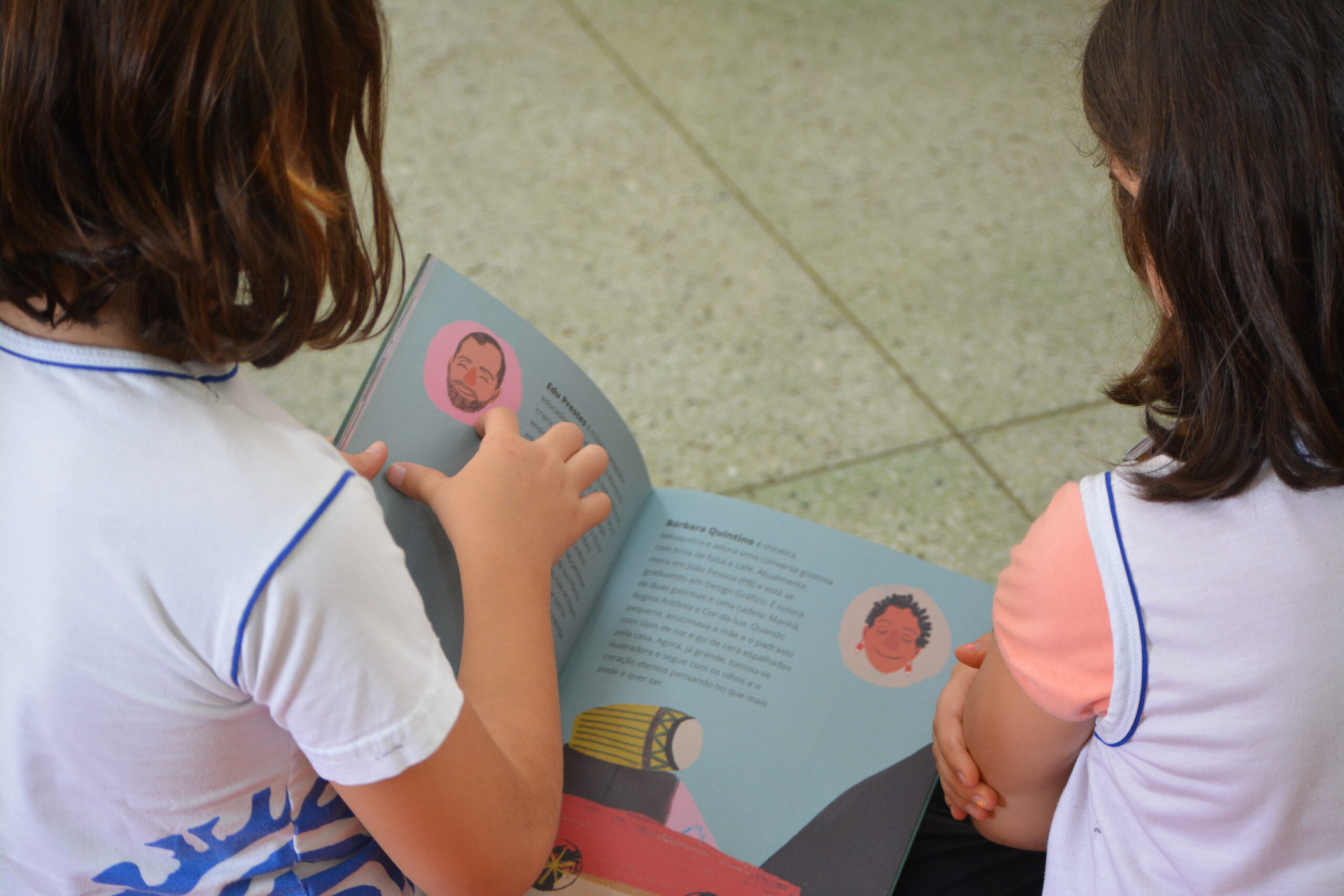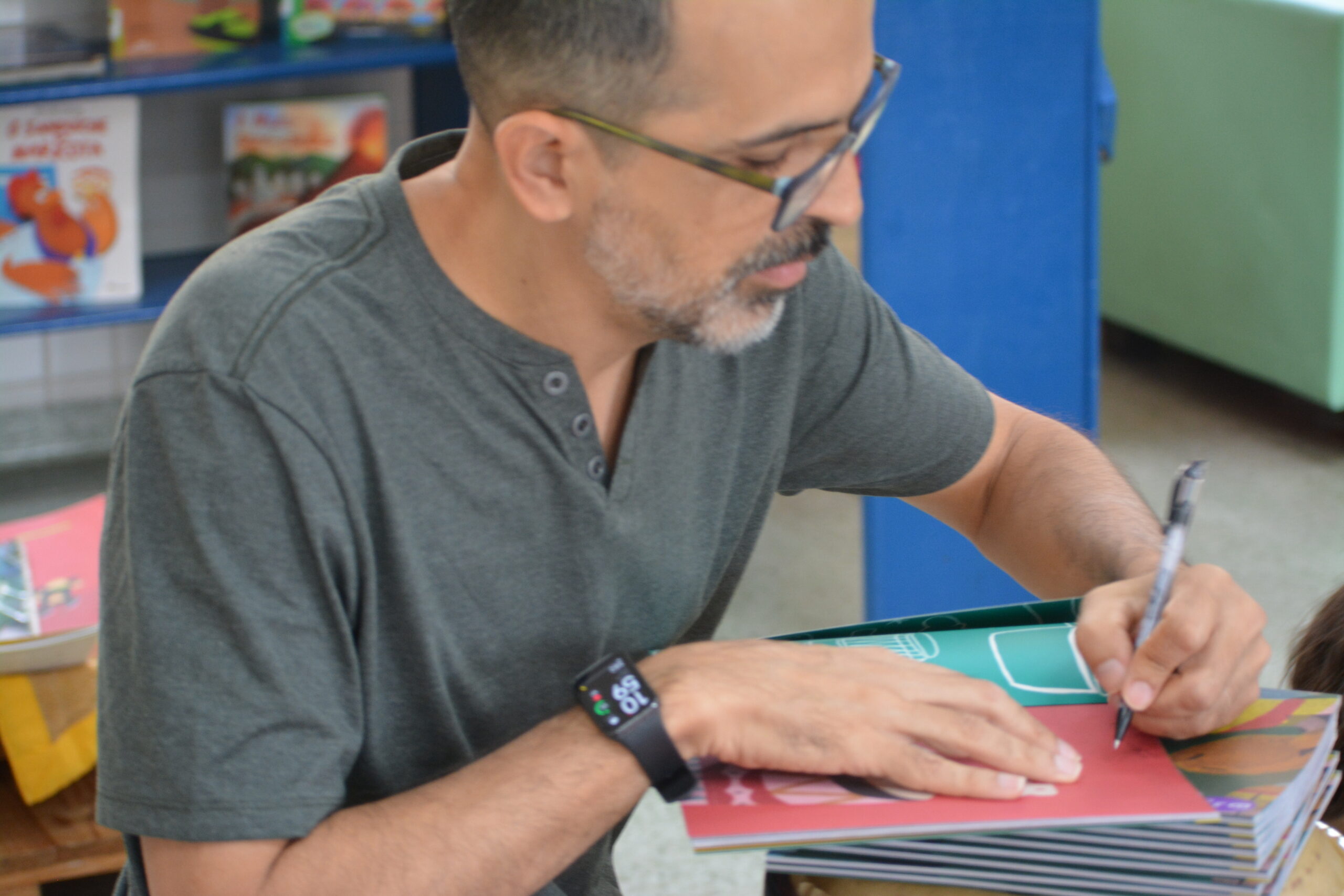 A partir da leitura do livro “Menino Tambor“, escolhido para costurar os estudos relacionados à cultura africana nas turmas do 2º ano do Ensino Fundamental, recebemos a visita do autor dessa história, Edu Prestes.