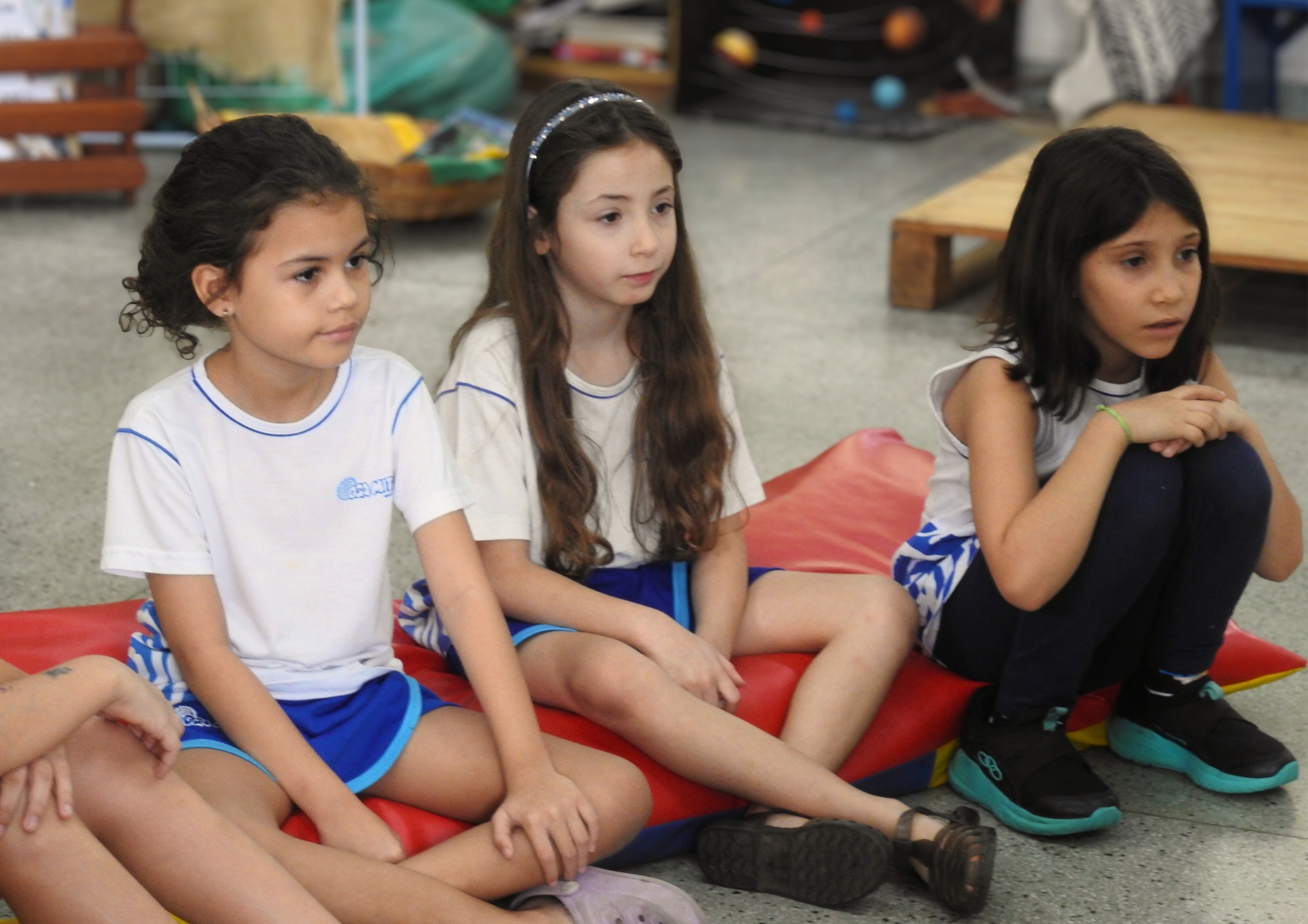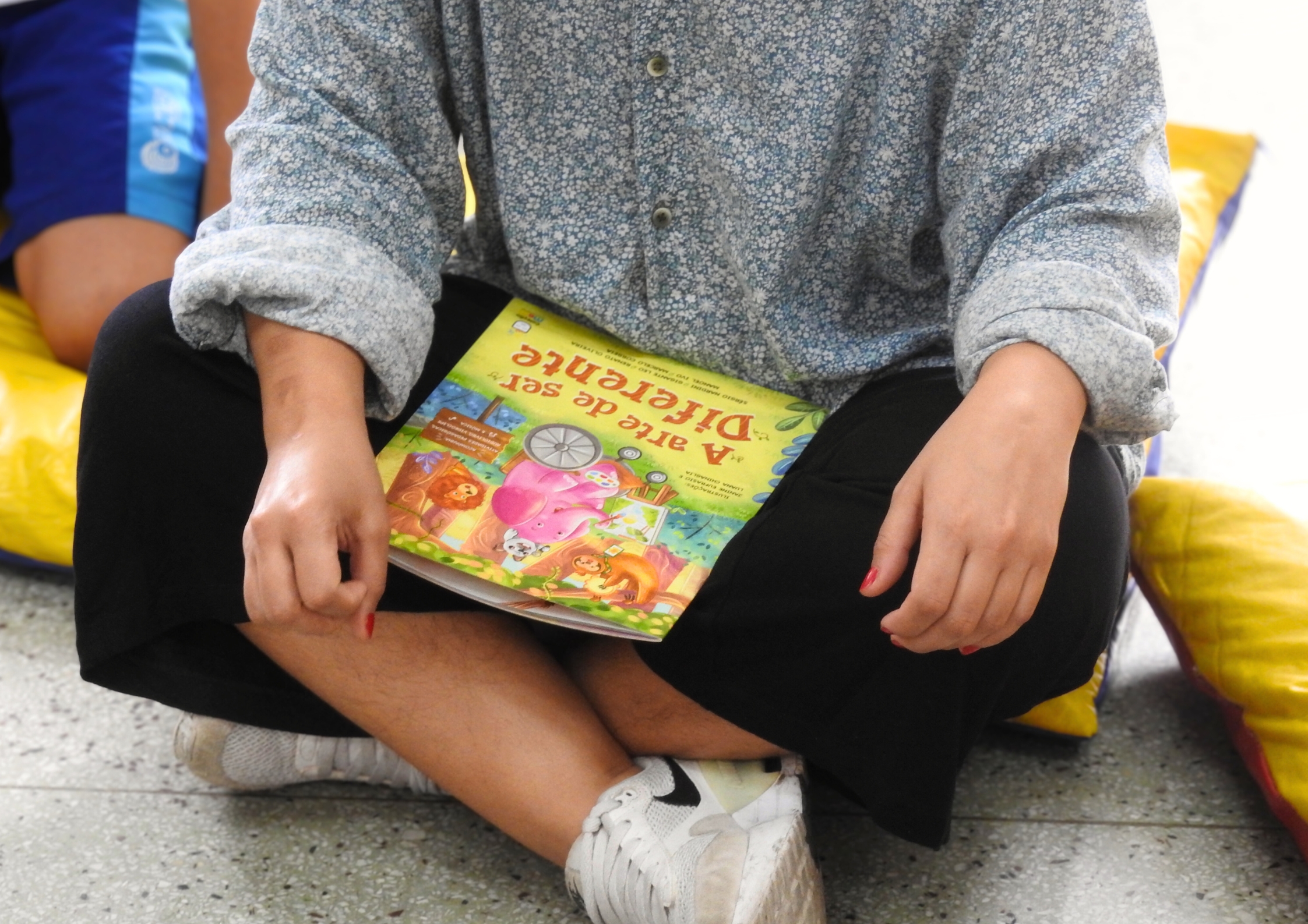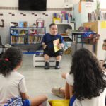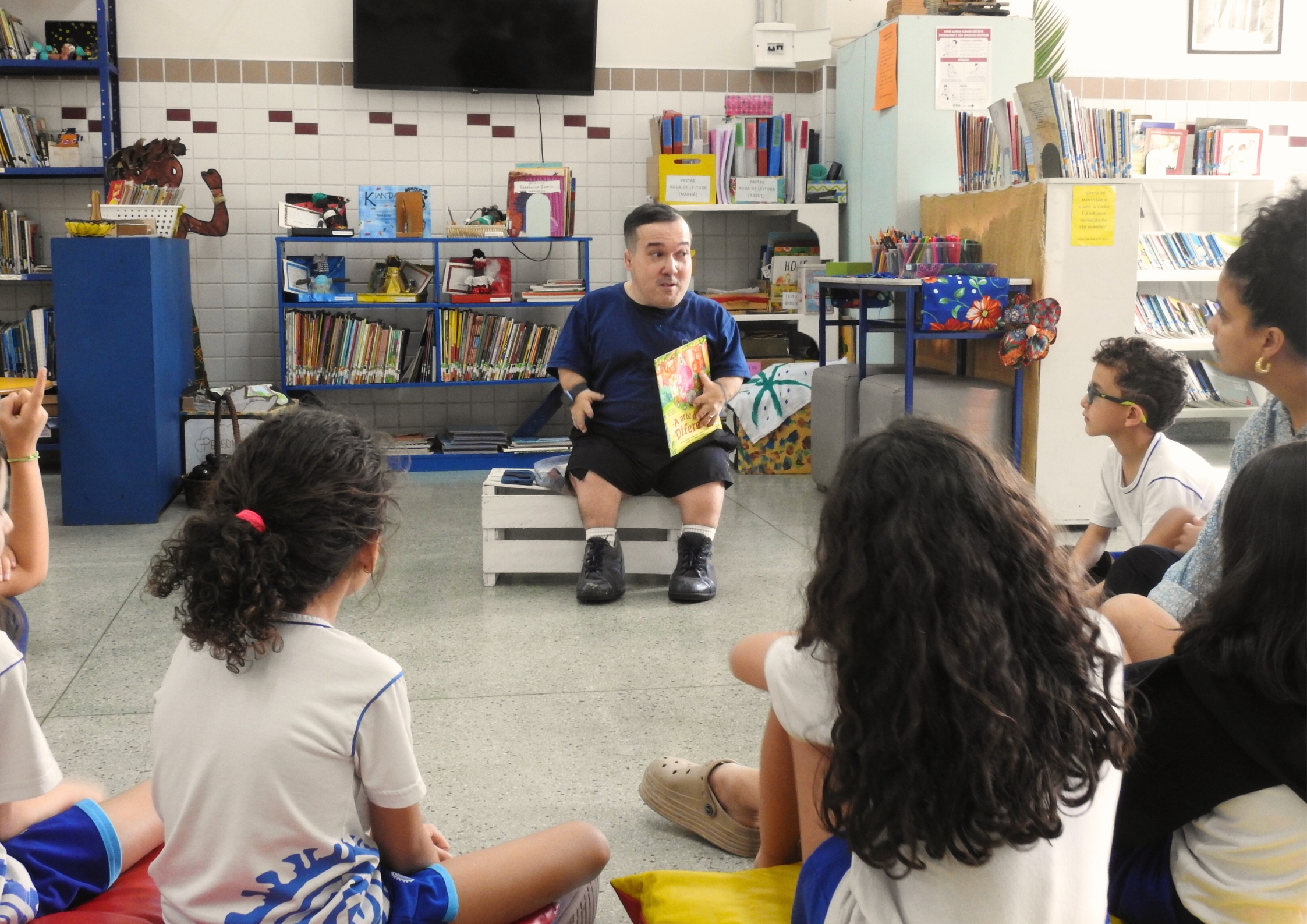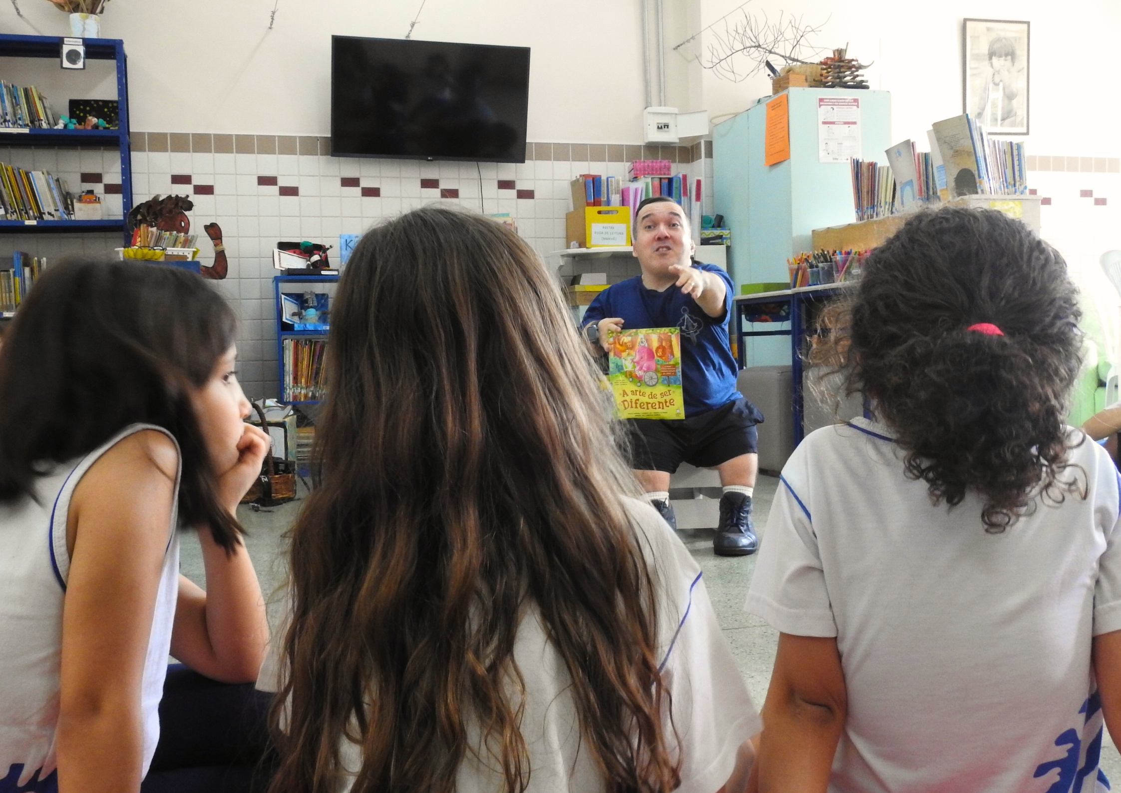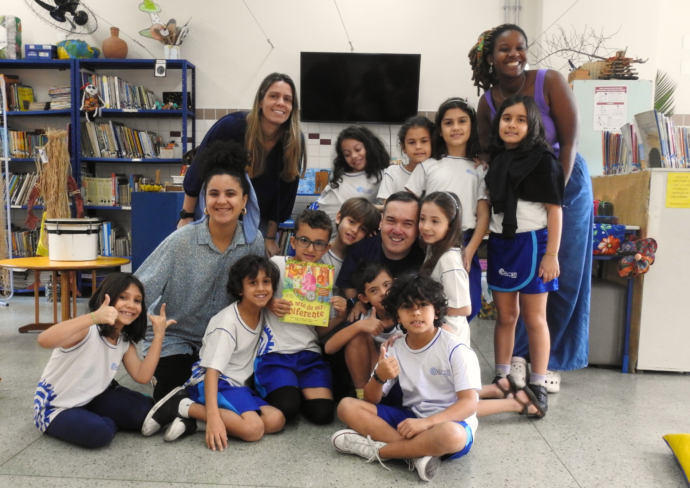 Depois de ler o livro A arte de ser diferente, a turma Kanoé Manhã teve a alegria de receber, na biblioteca, a visita de um dos autores, Gigante Leo, para uma conversa sobre detalhes do livro e sobre o direito que temos de existir em nossas potencialidades e dificuldades.