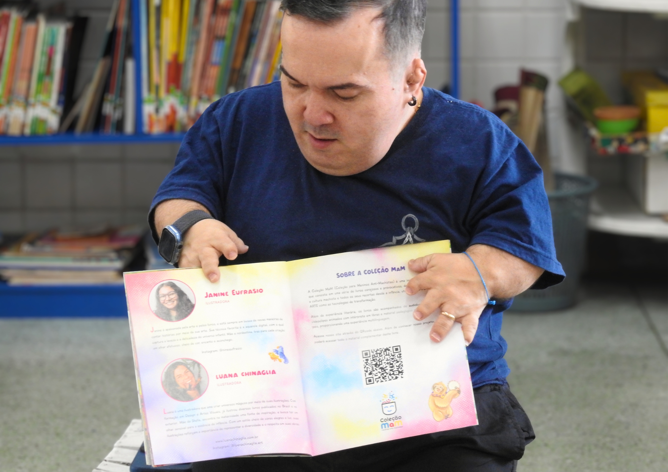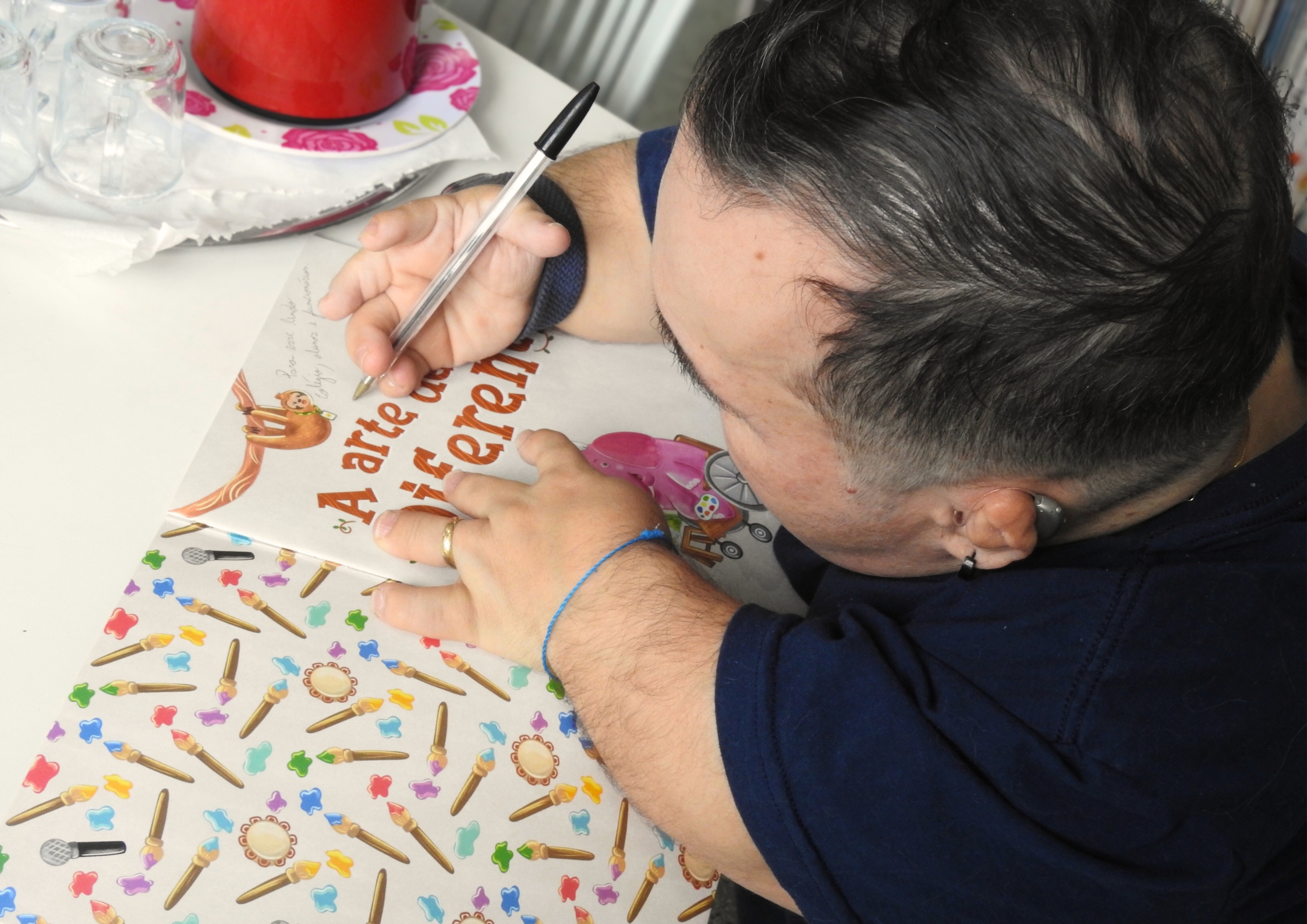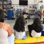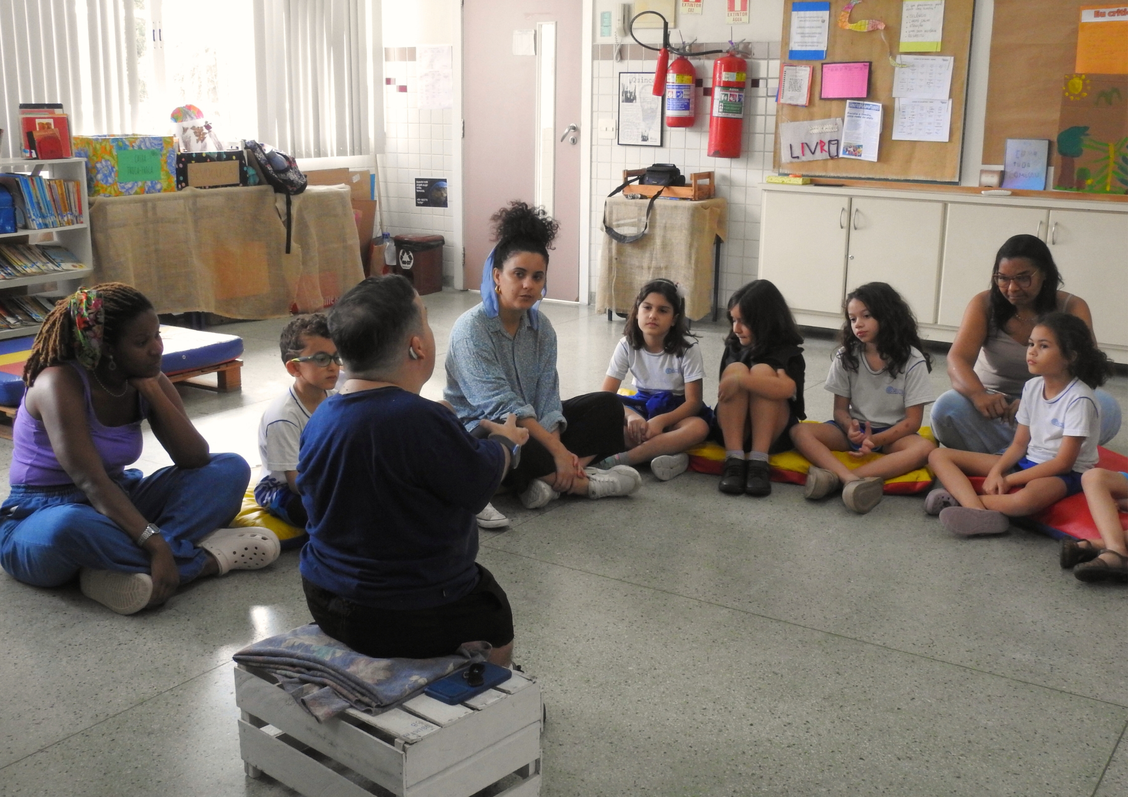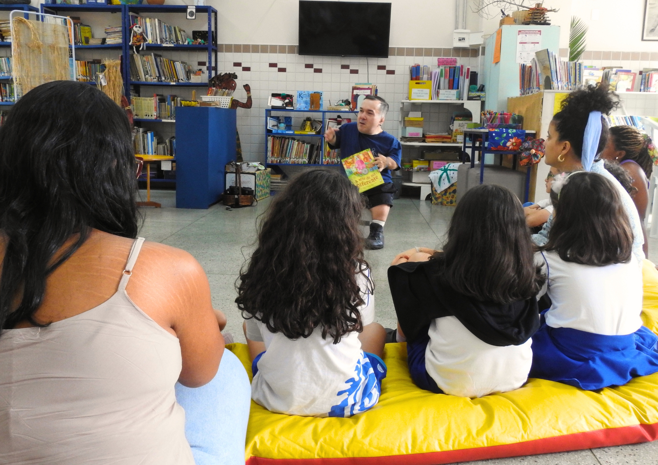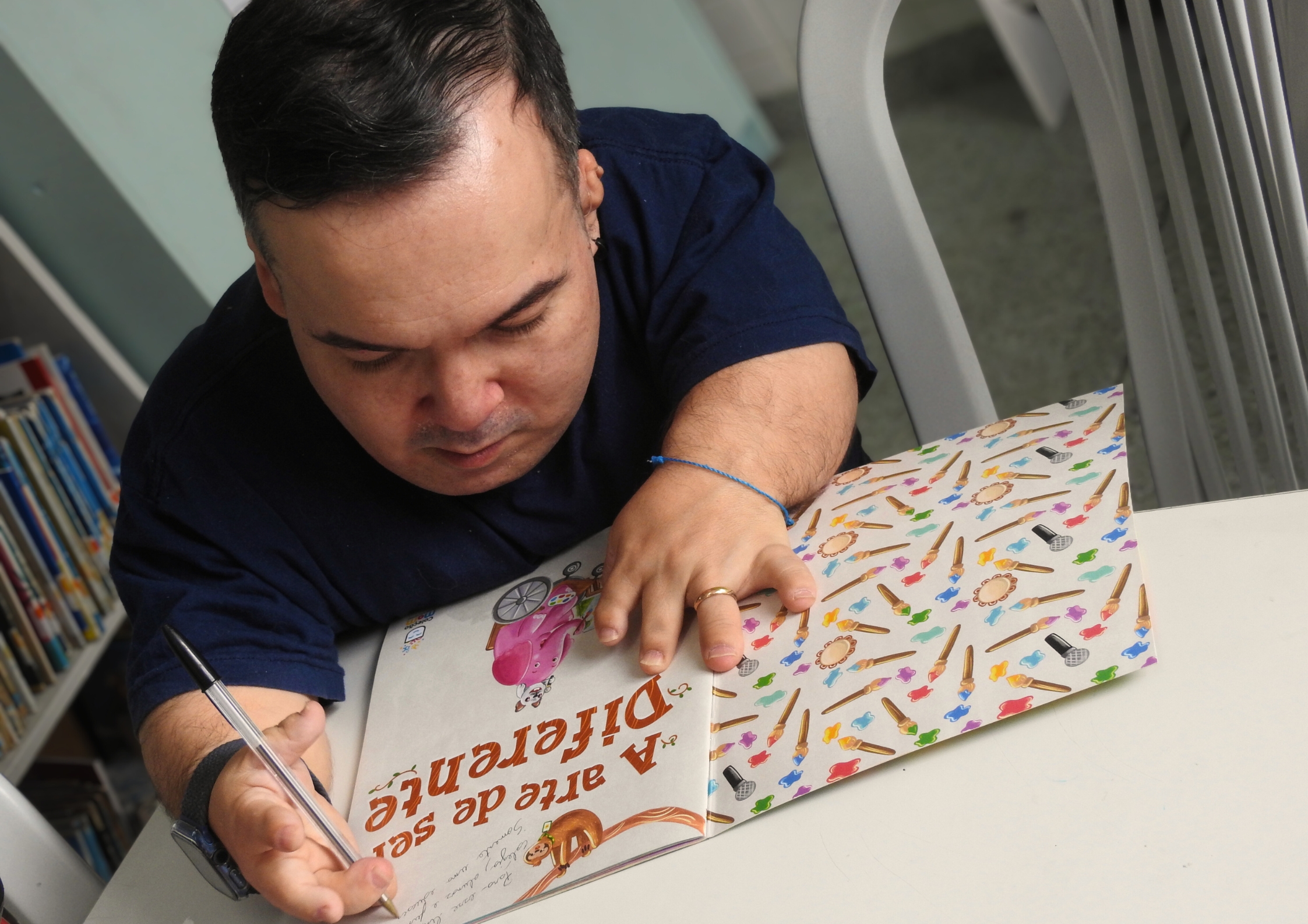 Depois de ler o livro A arte de ser diferente, a turma Kanoé Manhã teve a alegria de receber, na biblioteca, a visita de um dos autores, Gigante Leo, para uma conversa sobre detalhes do livro e sobre o direito que temos de existir em nossas potencialidades e dificuldades.